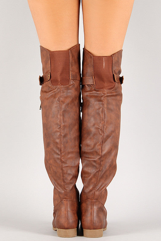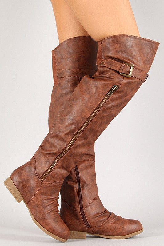 Description These boots feature a round toe, side zipper trims, decorative buckle strap accents, and low flat heel. Finished with cushioned insole and partial side zipper closure for easy on/off.