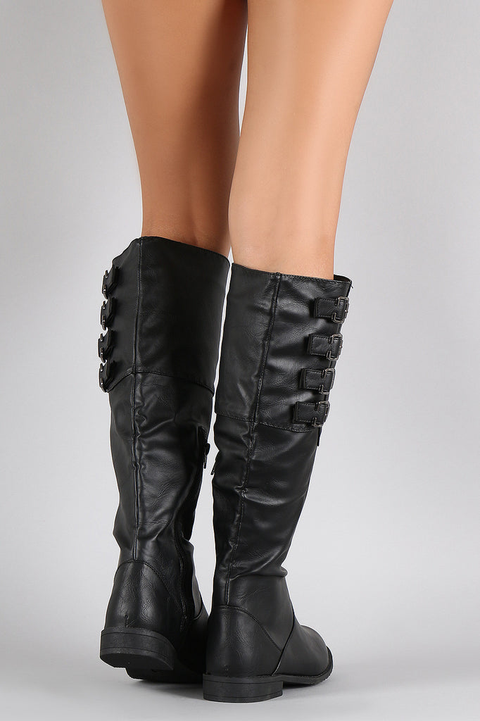 Description These fashionable boots feature a round toe silhouette, decorative buckles straps detail, top stitching accents, and low block heel. Finished with cushioned insole, soft interior lining, and partial side zipper closure for easy on/off.