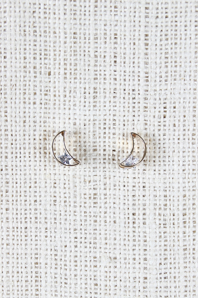 These unique earrings feature a star-shaped crystal in a glossy gold-tone frame. Finished with post backing.